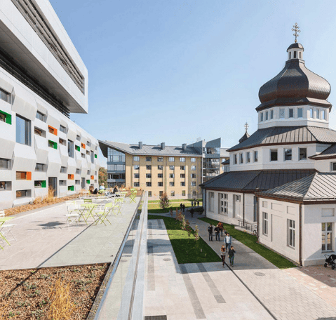 The UCU campus is a cool mix of modern European with classic Ukrainian influences.